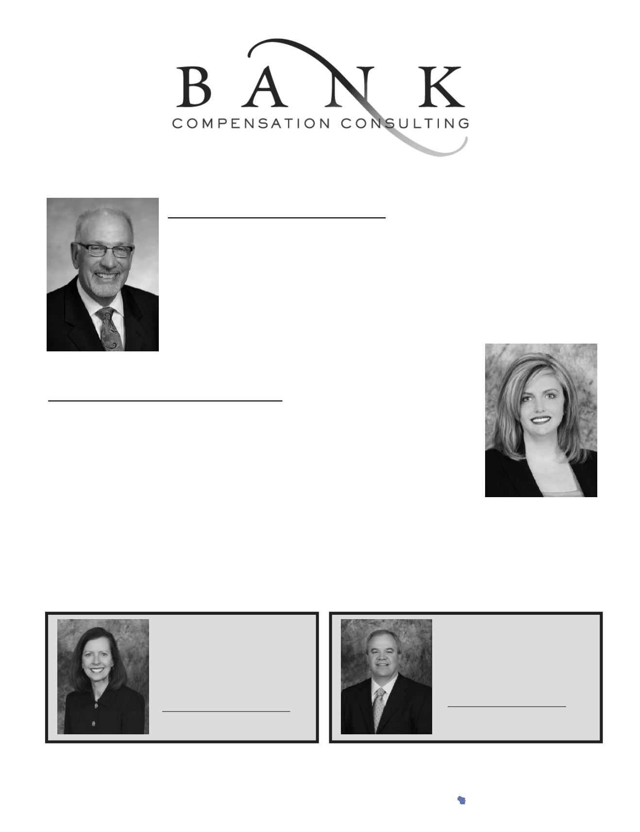 Insurance (BOLI); and ownership succession planning. Bank Compensation Consulting has a core group of
